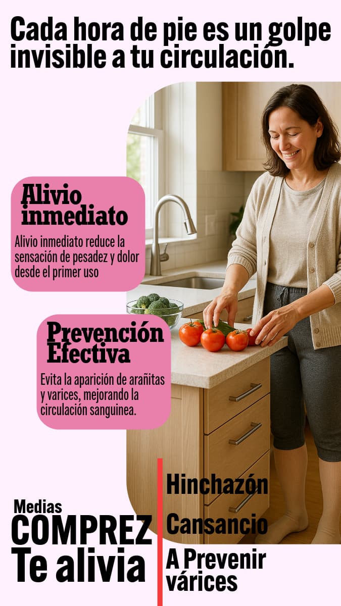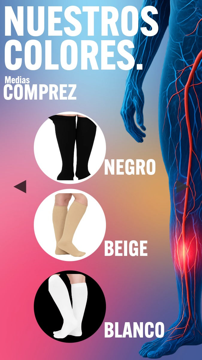 ¡Diseñamos medias de compresión 100% colombianas que realmente querrás usar! A diferencia de otros que aumentan la incomodidad, los nuestros son como un abrazo reconfortante, perfectos para la hinchazón, las varices y más.